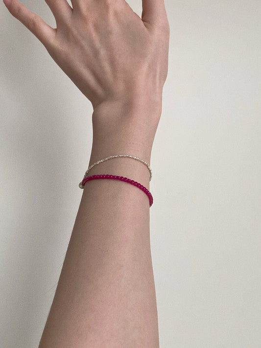 Natural Red Ruby & Thai Silver Bracelet | Baroque Petal Pearl Double Layer Jewellery