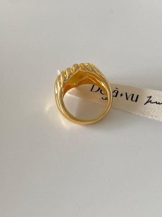 Dainty Black Agate Pearl Dual Tone Adjustable Ring