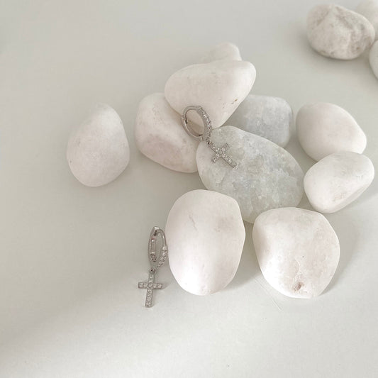 Divine Cross Sparkle S925 Silver & 18k Gold Hoop Earrings