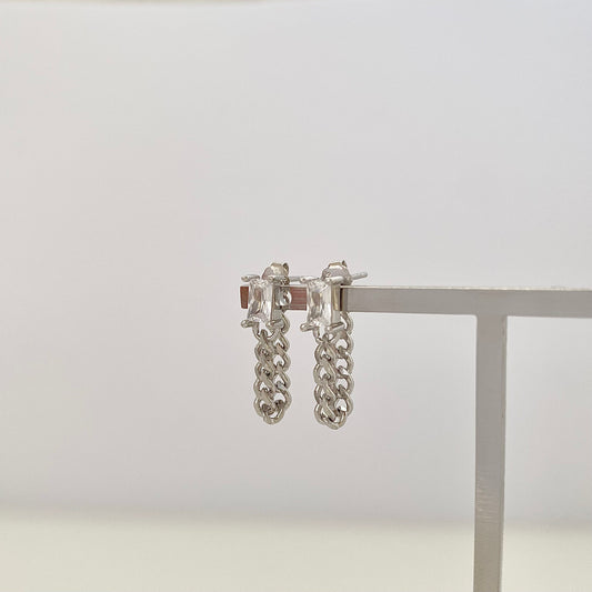 Elegant S925 Silver Twisted Chain Stud Earrings