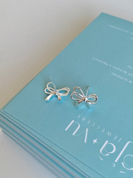 Minimalist Bow Pearl Stud Earrings — 18k Gold Plated 925 Silver / Sterling Silver