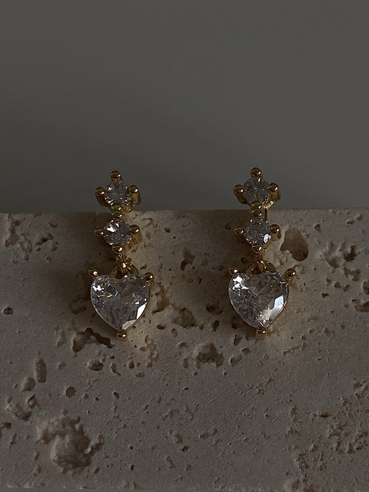 Golden Allure: 18K Gold-Plated Heart Gemstone Stud Earrings