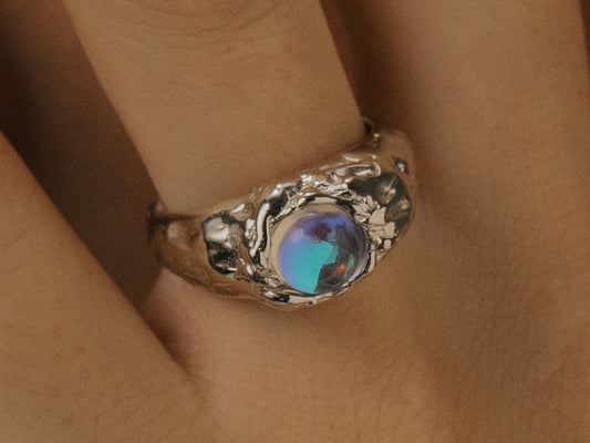 Lunar Elegance S925 Silver & 18k Gold Moonstone Ring