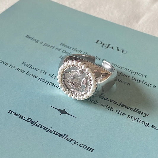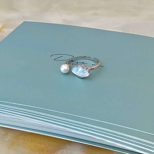 Tide Whisper Dainty Shell & Pearl Open Silver Ring
