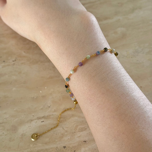 Dainty Natural Tourmaline Gold Chain Beaded Necklace