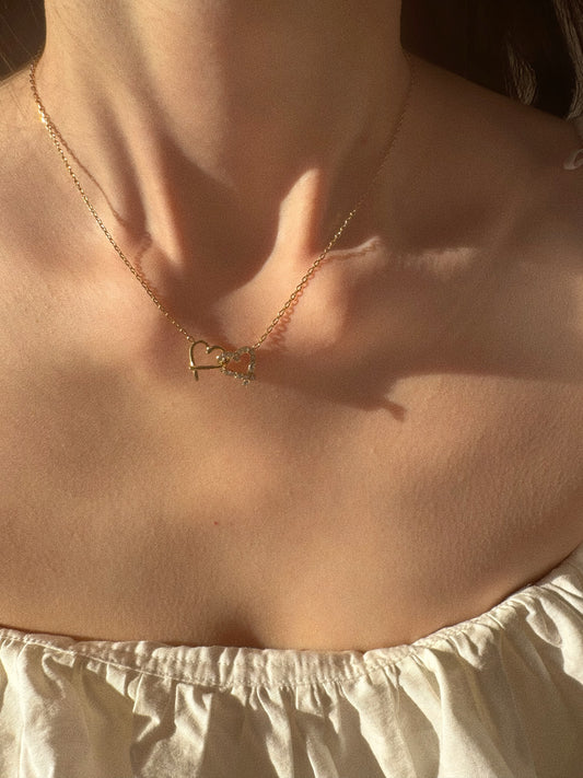 The Love Knot Smile Necklace | Curved Heart Bar (Waterproof Gold)