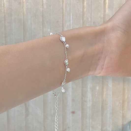 Dainty Silver Seashell & Pearl Charm Bracelet
