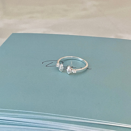 Dainty Twin Tides Seashell Open Sterling Silver Ring