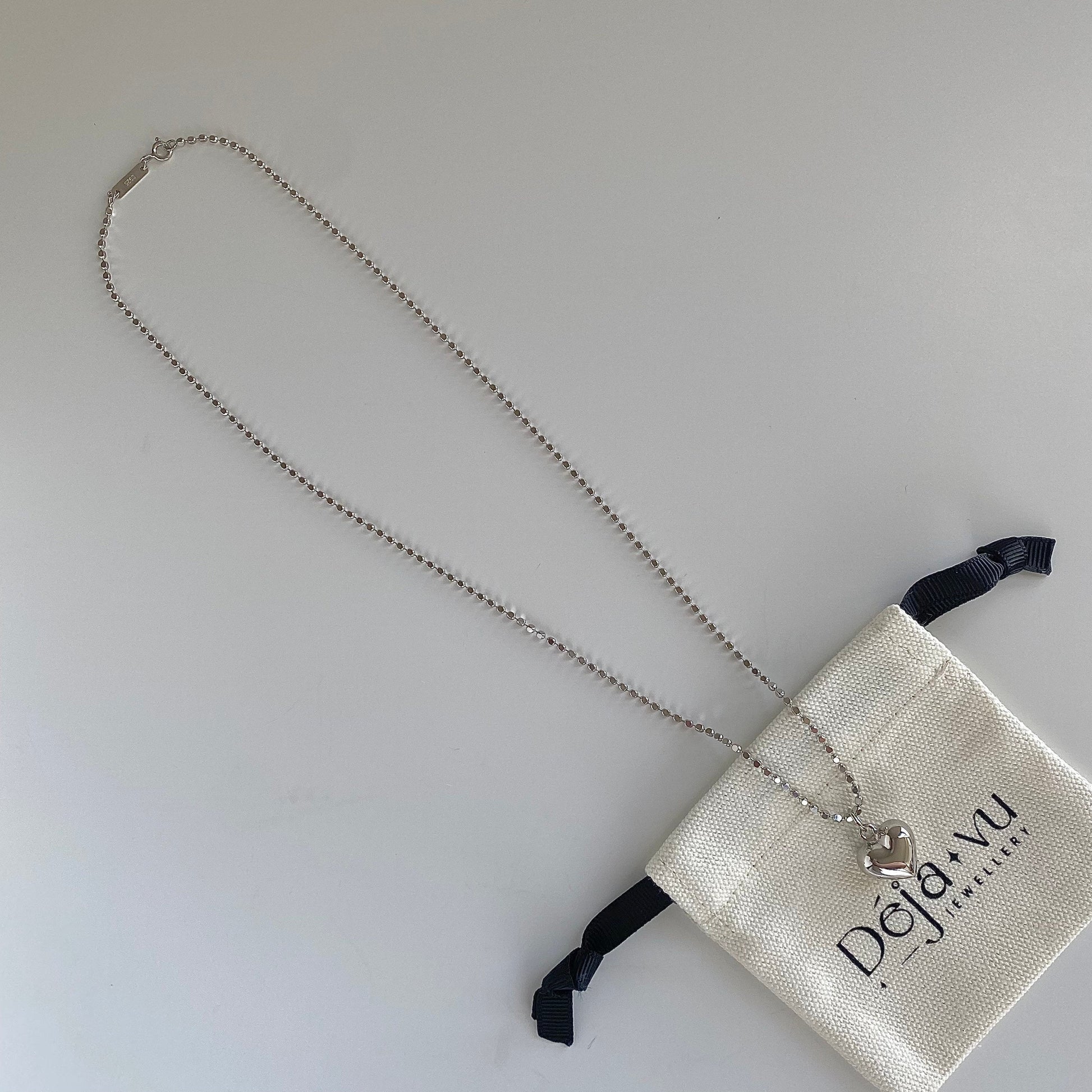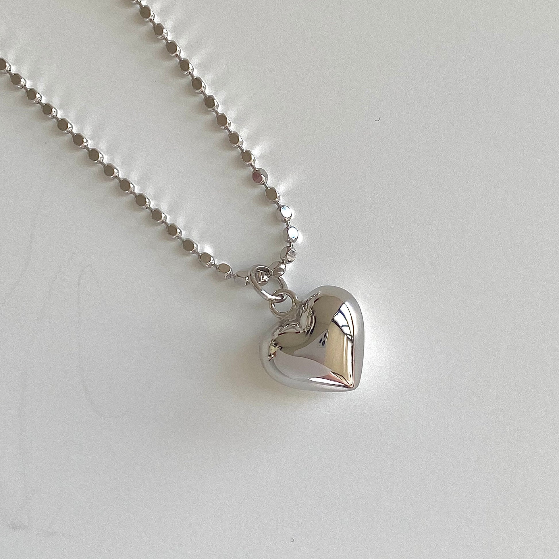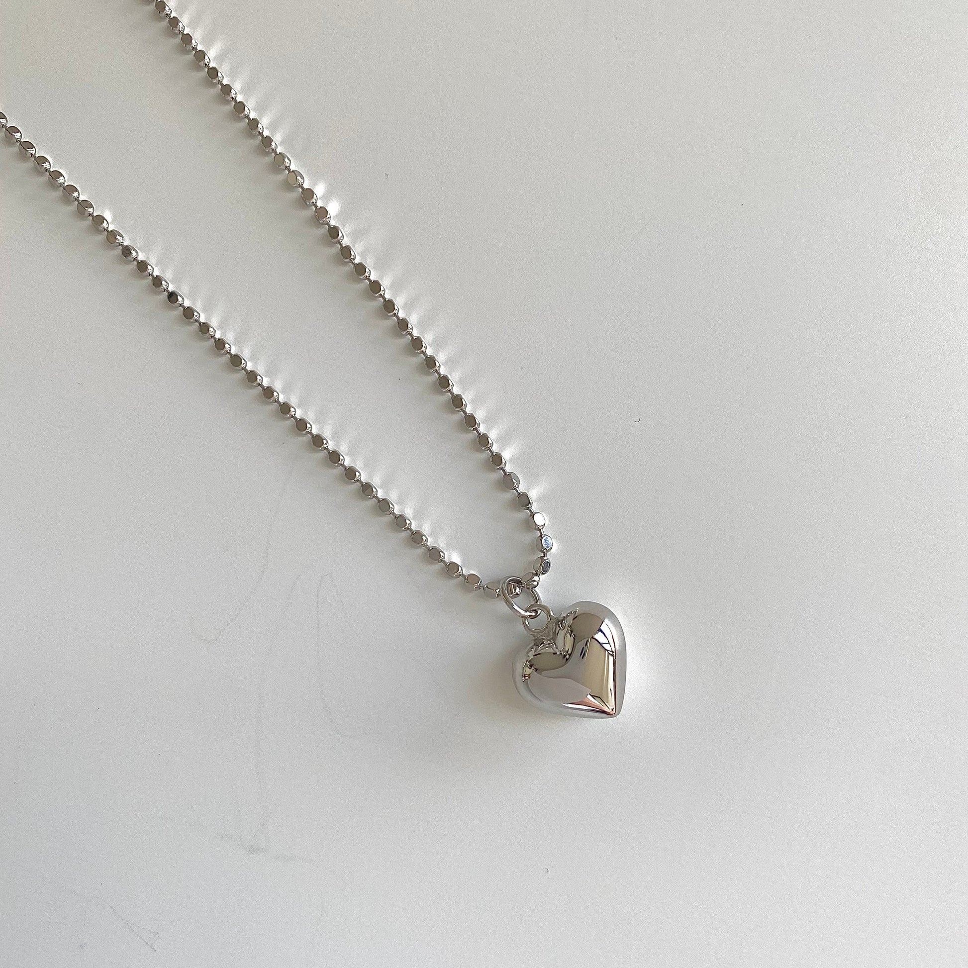 Introducing "Heartfelt Shine", a captivating piece from our Deja vu Jewellery collection. This necklace is a testament to the beauty of pure S925 silver, crafted into a beaded cube chain and a three-dimensional heart pendant.