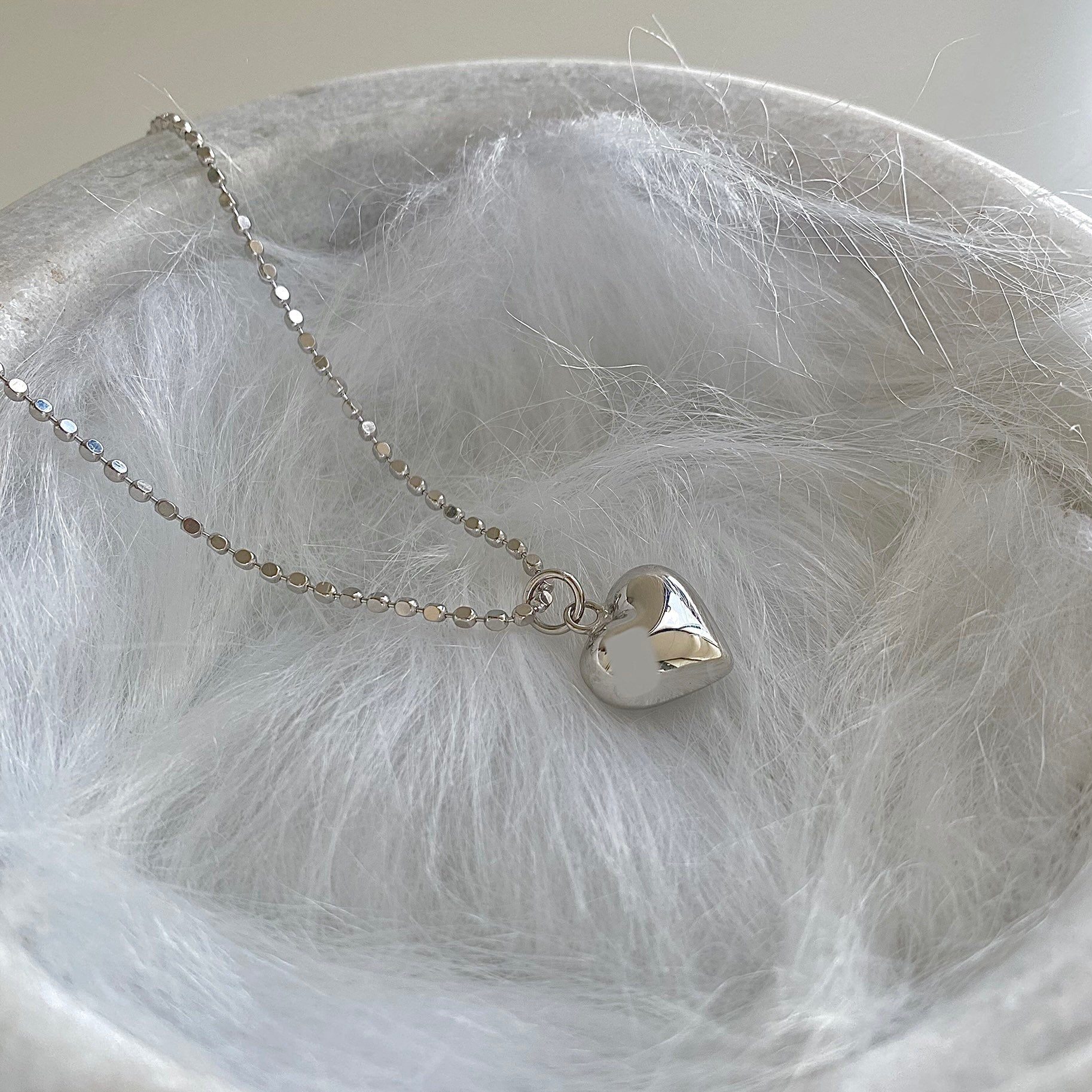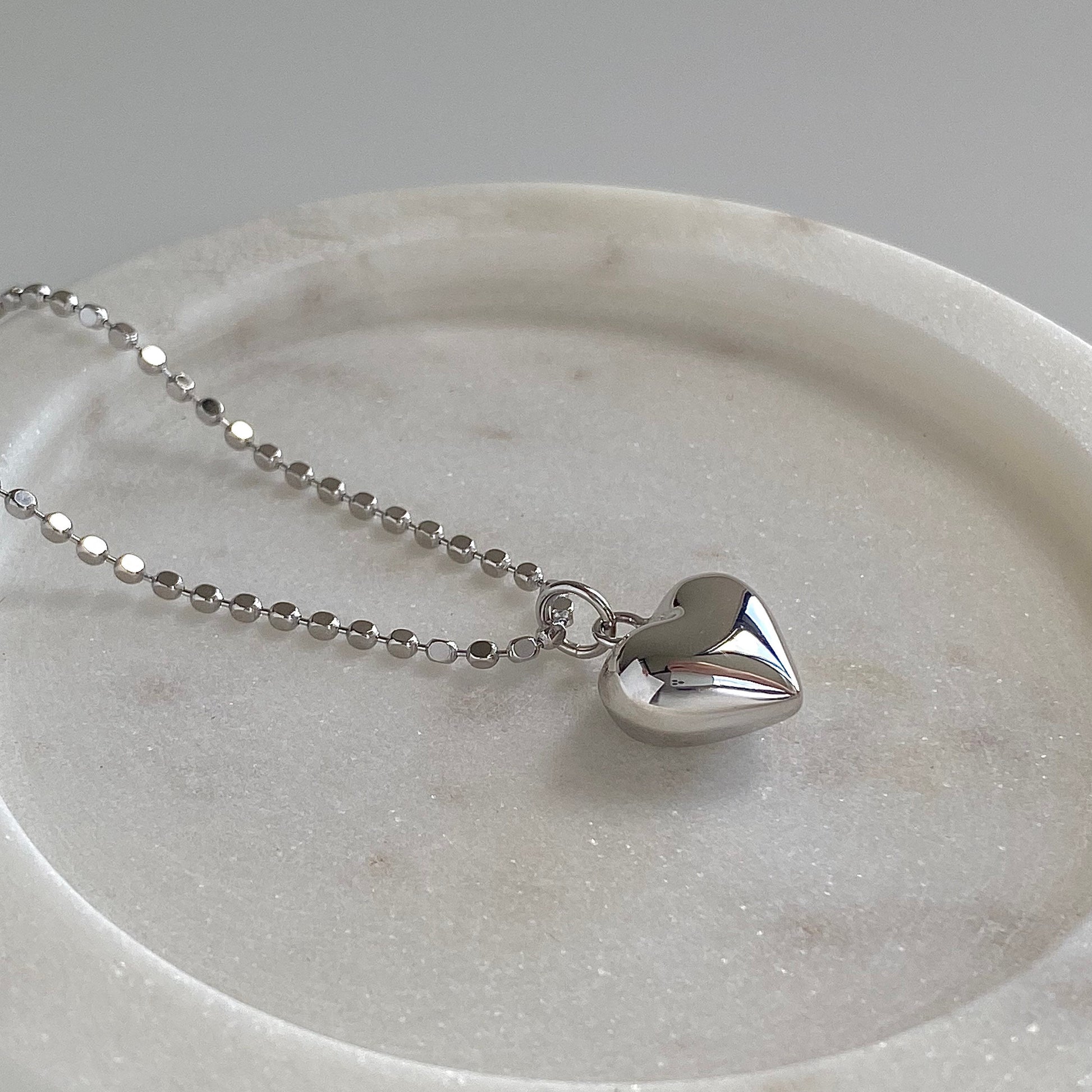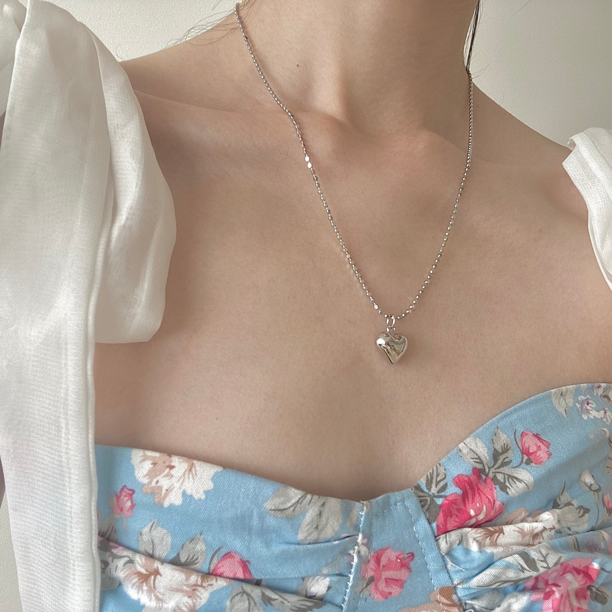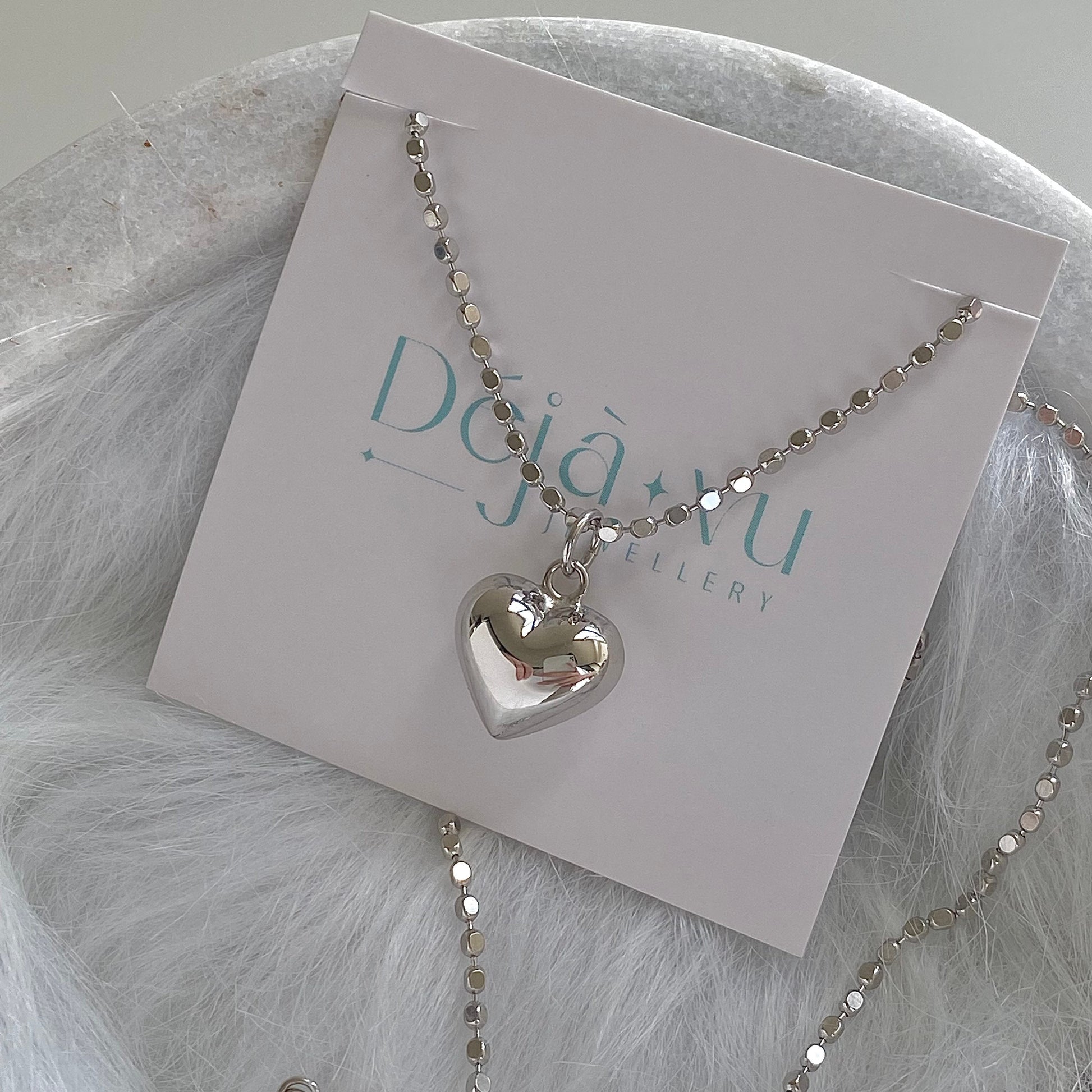 Introducing "Heartfelt Shine", a captivating piece from our Deja vu Jewellery collection. This necklace is a testament to the beauty of pure S925 silver, crafted into a beaded cube chain and a three-dimensional heart pendant.