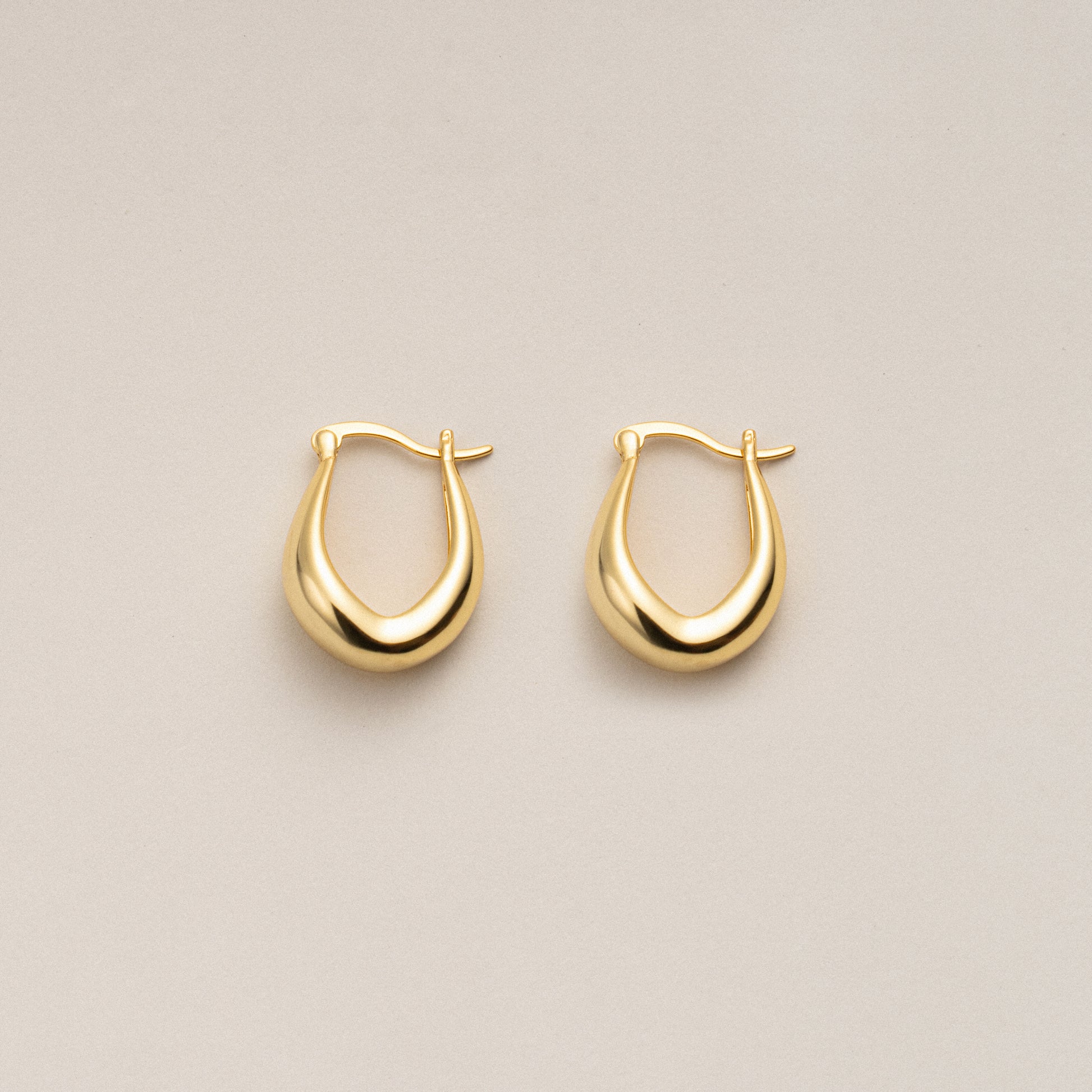 The earrings are designed with a robust and oval form, creating a substantial yet comfortable piece of jewelry. The abstract tulip design, combined with the rich gold plating, makes these earrings a standout piece in any jewelry collection.