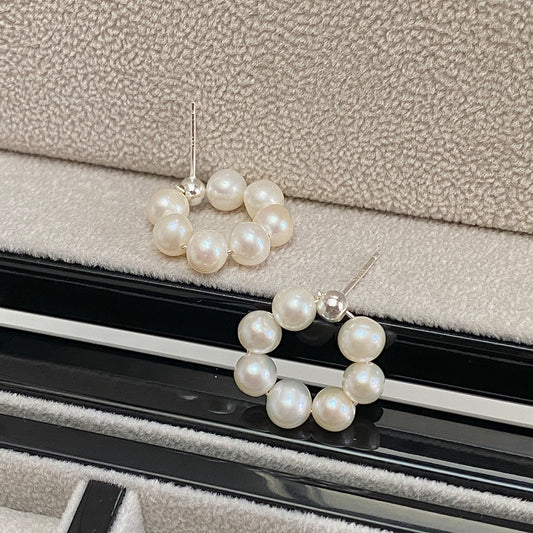 Pearl Halo Silver Stud Earrings