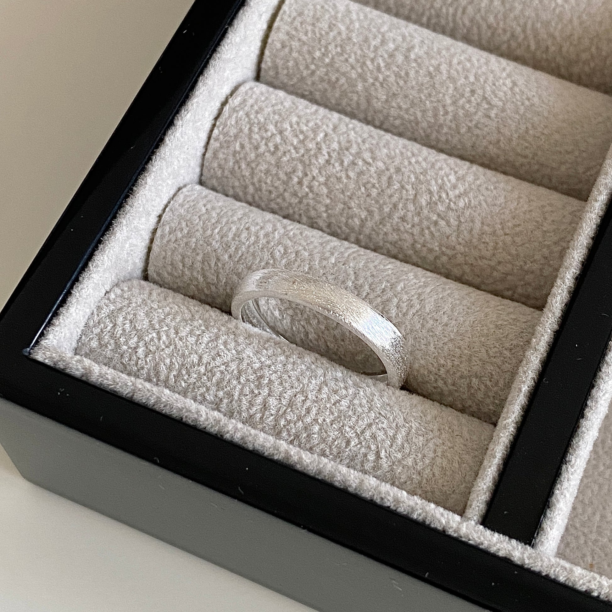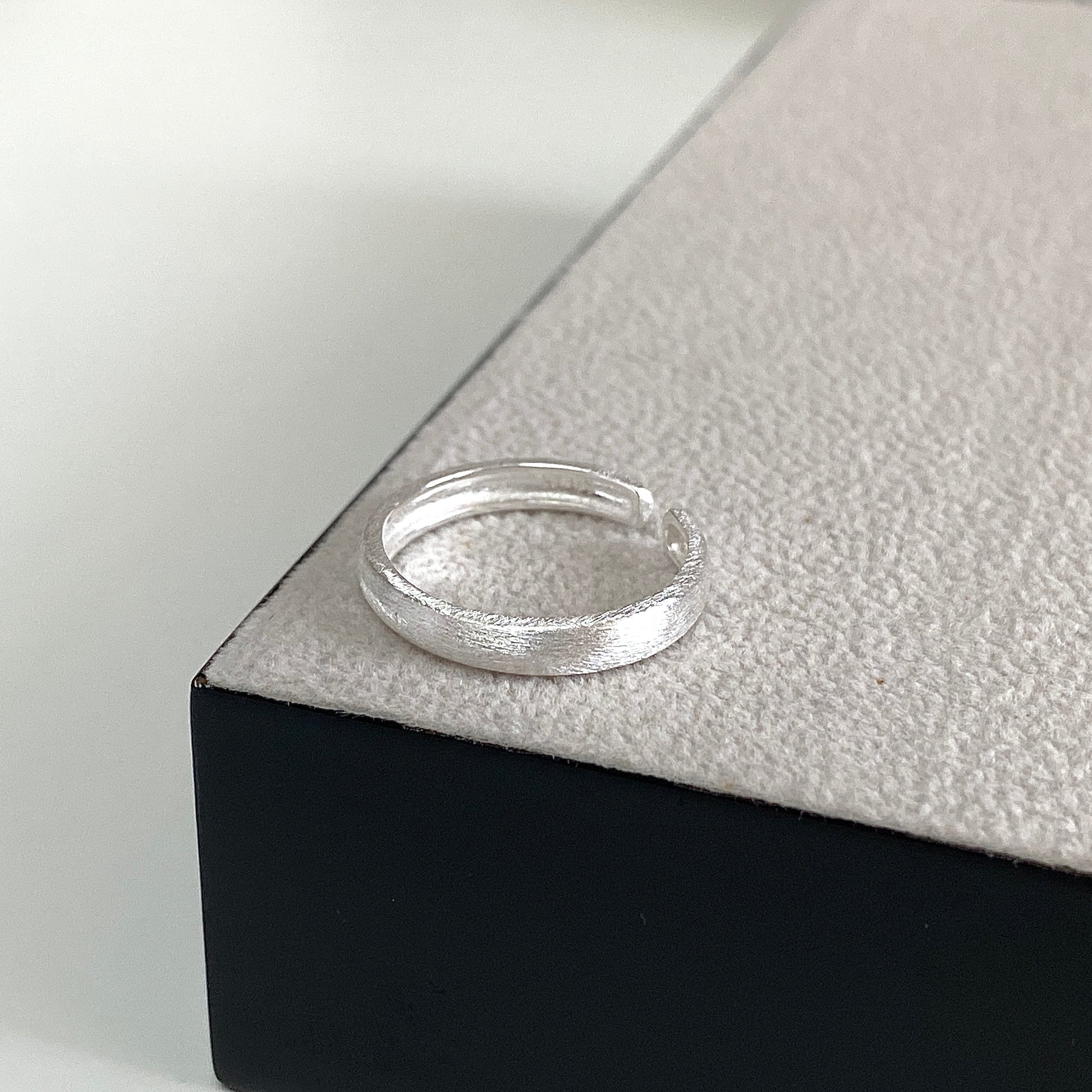 Our Brushed S925 Silver Minimalist Ring is meticulously crafted from pure S925 silver, designed for those who appreciate dainty ring designs. Its band, approximately 3mm wide, features an understated brushed finish that lends a distinctive bright and white sheen, a touch lighter than traditional silver. The ring's surface is adorned with delicate brushed strokes offering a unique texture and a lustrous gleam. Eschewing any additional ornamentation, this ring stands as a testament to the beauty of simplicity. The ring is designed for US size 6-9, with an open band to ensure a perfect fit, making it an adjustable ring that suits many.