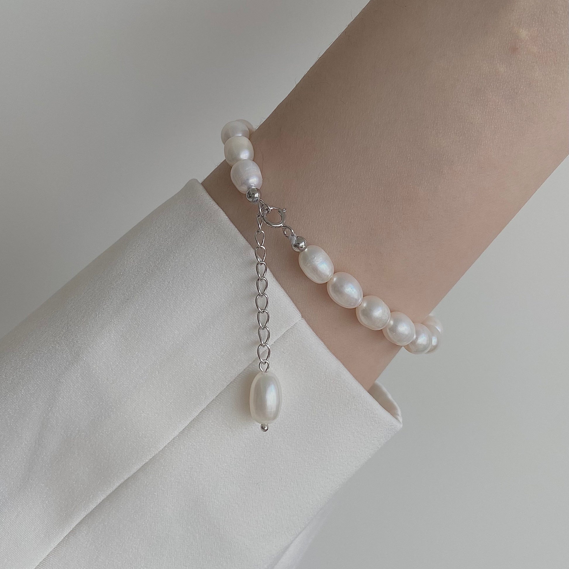 Each pearl in this bracelet is carefully selected for its shape and luster, adding a special touch to the piece. The bracelet is finished with a 925 pure silver spring ring and comes with an extension chain for adjustable comfort. An extra oval pearl is hung at the end of the extension chain, adding a charming detail. The bracelet measures 22 cm in length, and with a 3 cm extension chain, it can be extended up to 25 cm, ensuring a perfect fit.