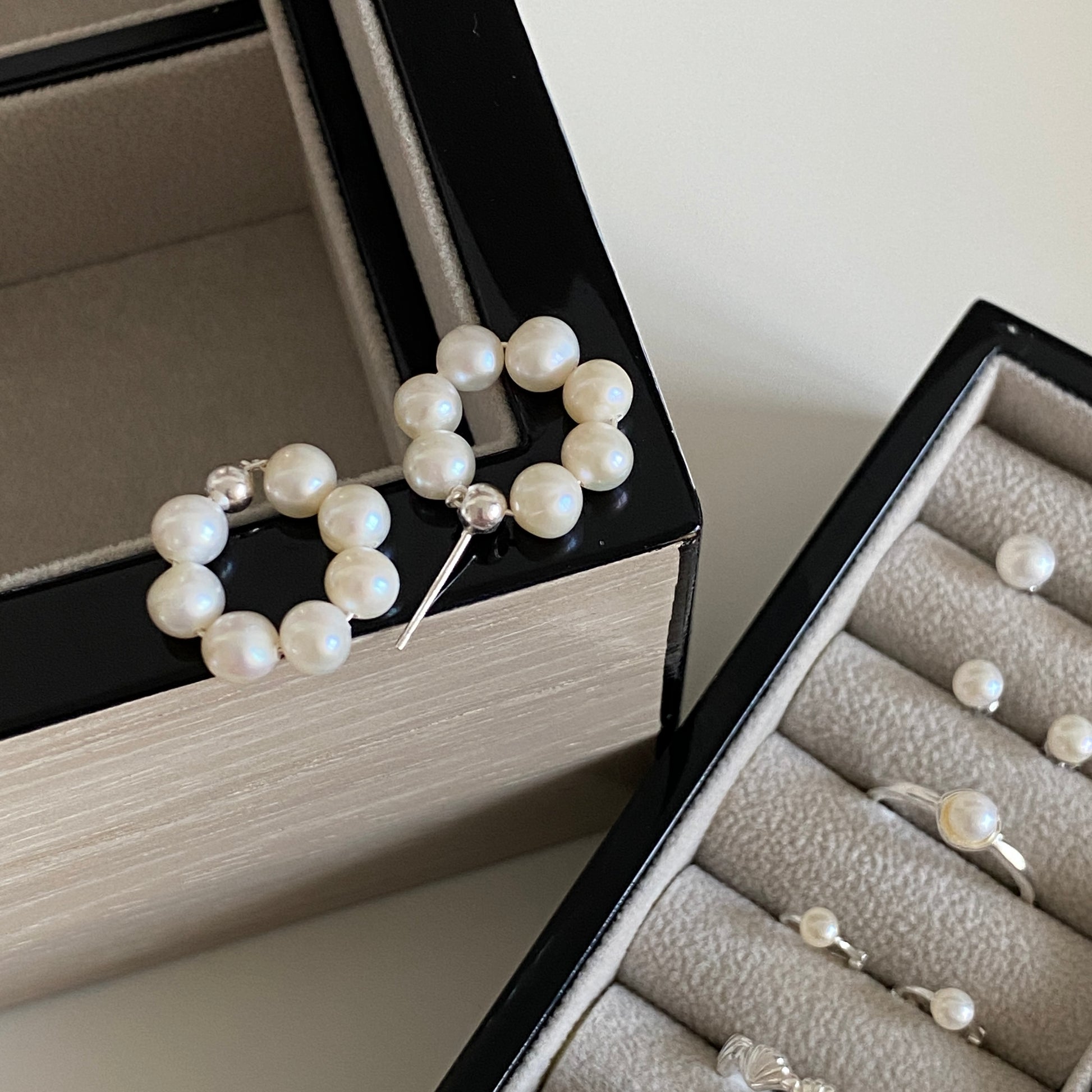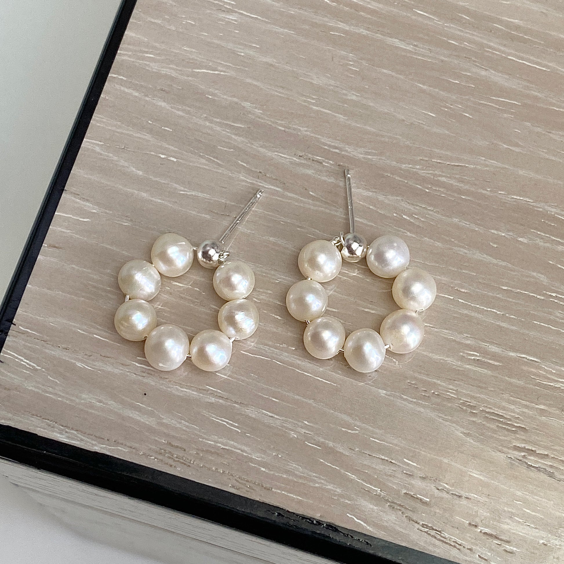 These pearl stud earrings are designed with a lover of classic elegance in mind. The halo of pearls symbolizes unity, completeness, and the cyclical nature of life, making them a perfect bridal earrings choice. The freshwater pearls, with their soft luster, evoke a sense of calm and serenity, perfect for anyone seeking a touch of tranquility in their everyday life. Their dainty and minimalist design also makes them cute earrings that will be loved by all.