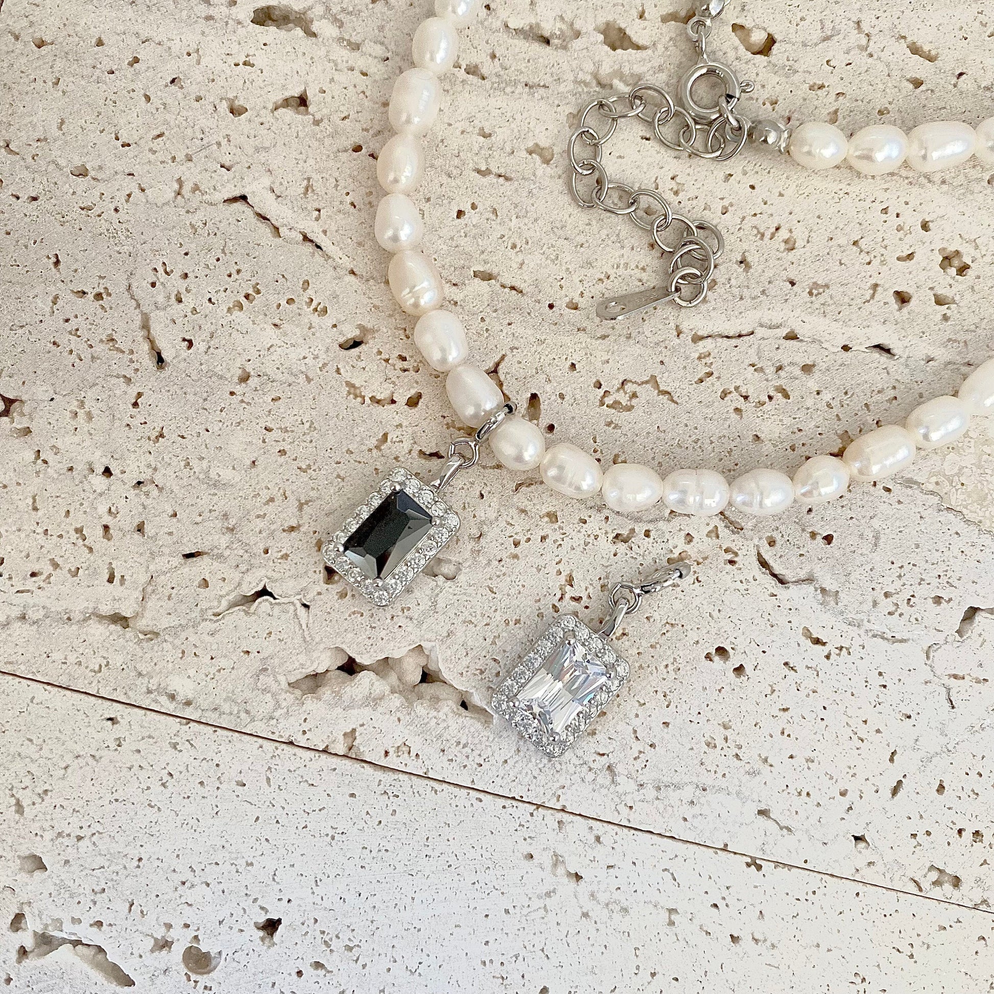 Introducing the "Dazzling Duo", a versatile piece from Deja vu Jewellery. This pendant, available in both black and white gem styles, is crafted from 925 silver and features a high-quality rectangular Cubic zirconia as its centerpiece.
