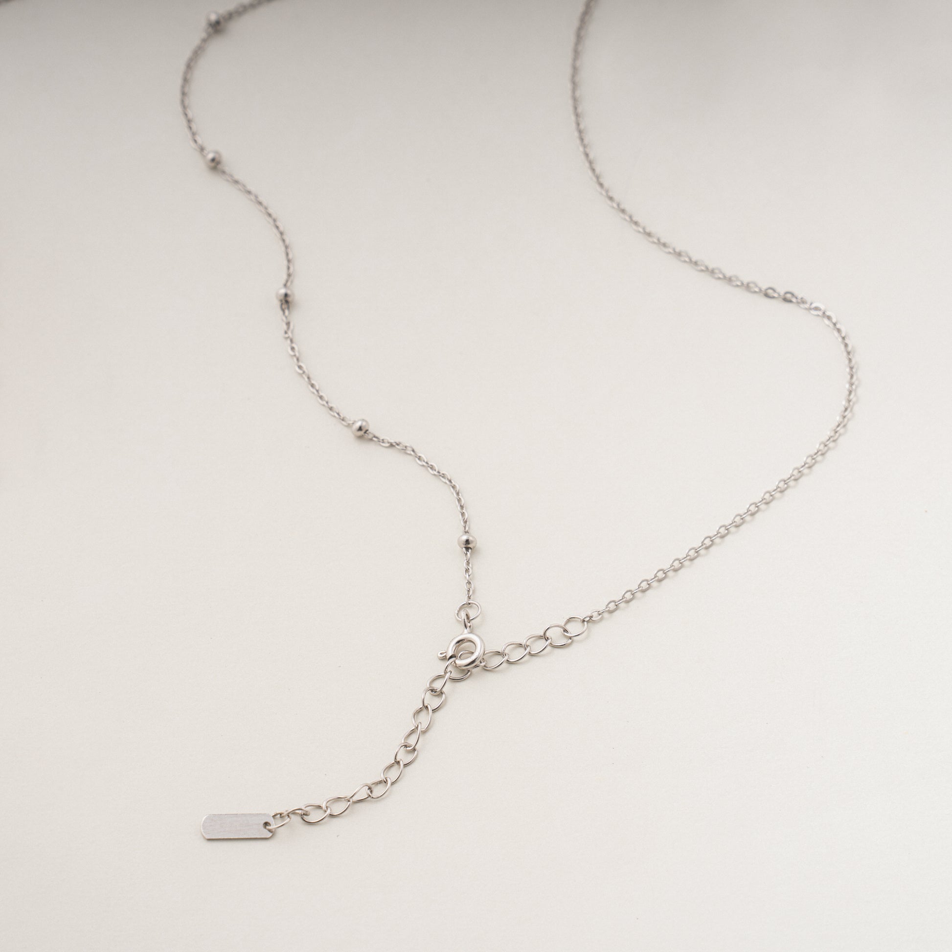 The chain uses a unique spliced design, combining a satellite chain and a cable chain, making this necklace a standout piece. The total length of the necklace is 40 cm, with an additional 5 cm extension chain for adjustable comfort.