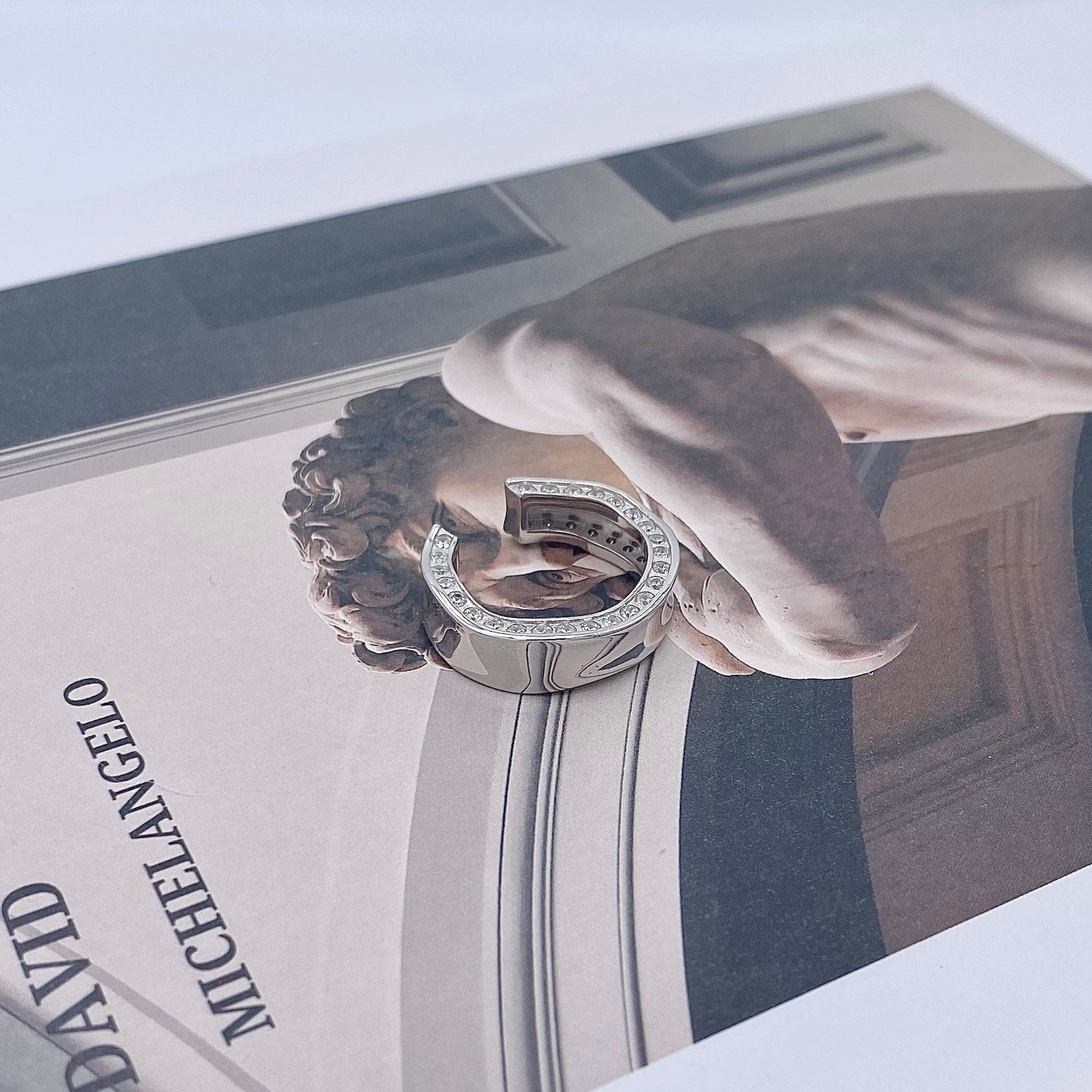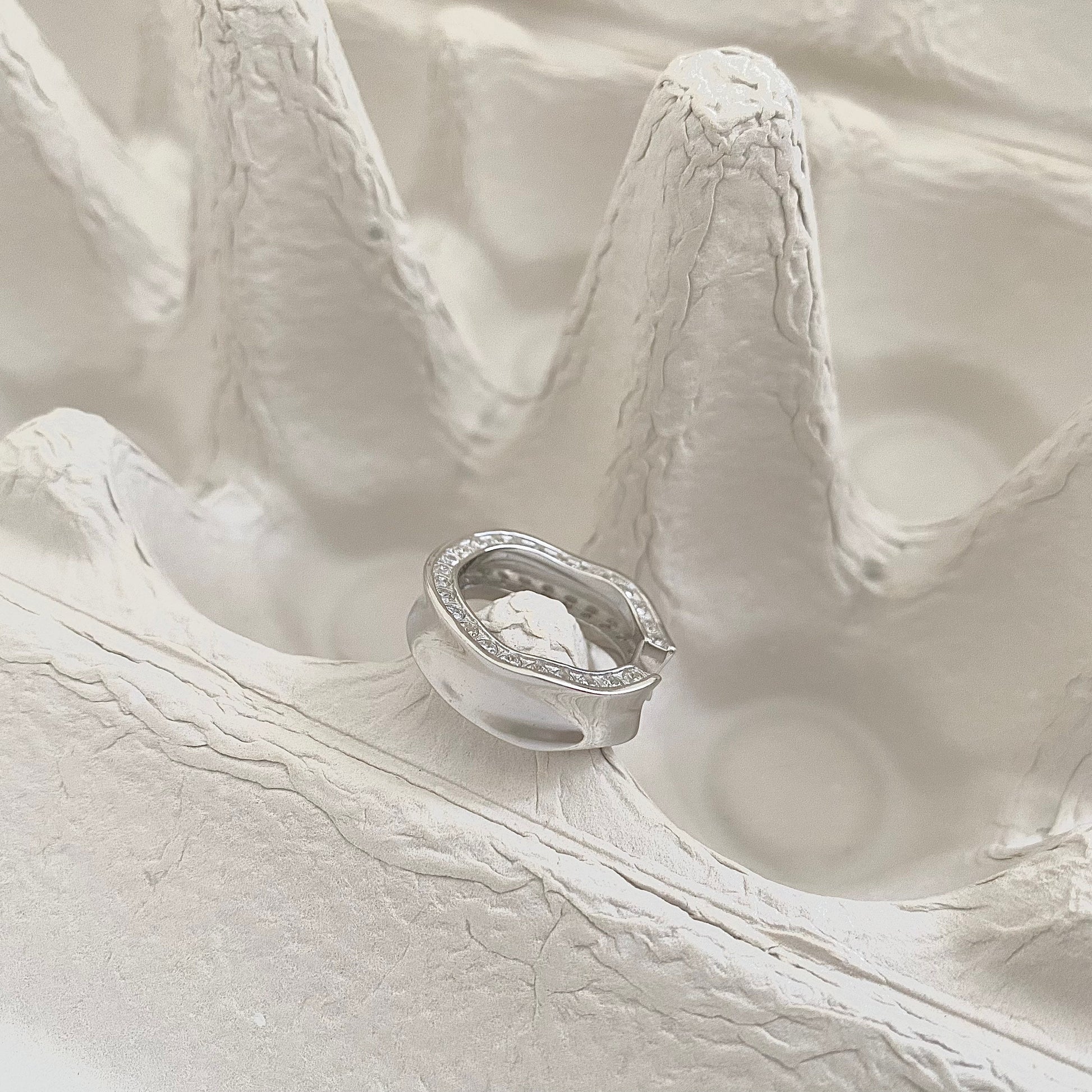 "Glimmer Curve" draws inspiration from the beauty of irregularities in nature and the sparkle of precious gems. The irregular curved surface represents the uniqueness and individuality of each wearer, while the Cubic zirconia symbolizes the unexpected sparkles in life. This piece is not just an accessory, but a celebration of individuality and the beauty found in unexpected details.