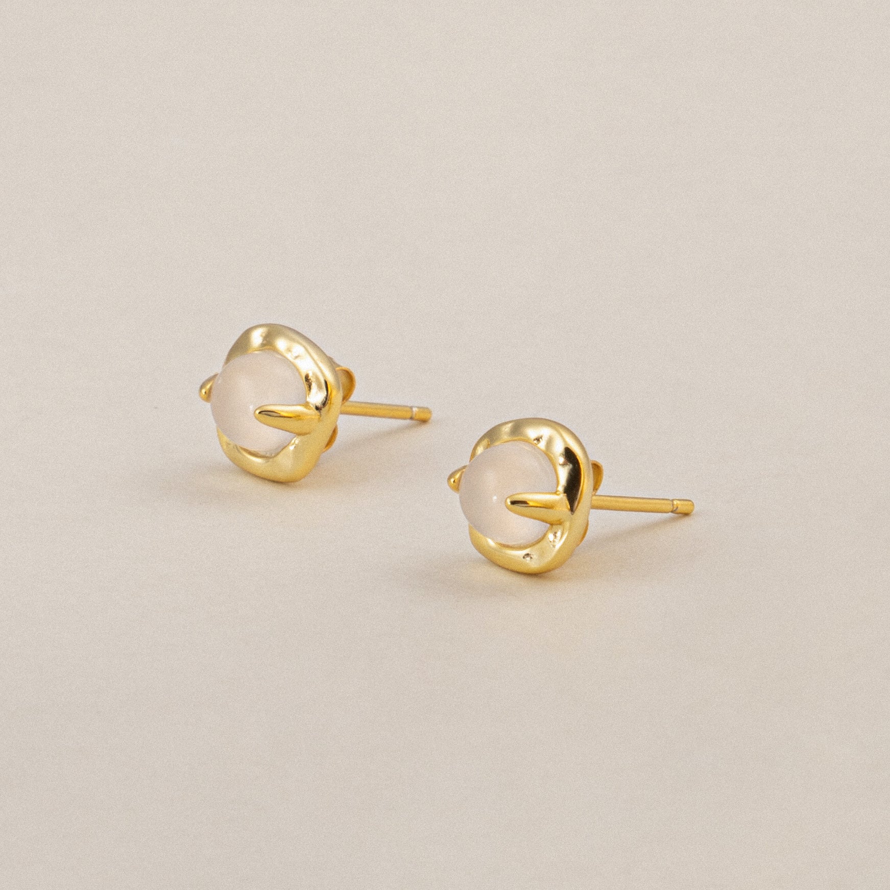 Available in two irresistible finishes, these delicate stud earrings cater to different style preferences and occasions. One version is crafted in 925 sterling silver, celebrated for its timeless appeal and durability, while the other is skillfully 18k gold-plated over 925 sterling silver, adding a glamorous touch of luxury without compromising on comfort. Each stone is set in a simple, graceful bezel that keeps the spotlight on the natural beauty and healing essence of white agate. By resting just above the jawline, these studs lend a soft radiance to your look, blending effortless sophistication with the spiritual calm often associated with white agate jewelry.