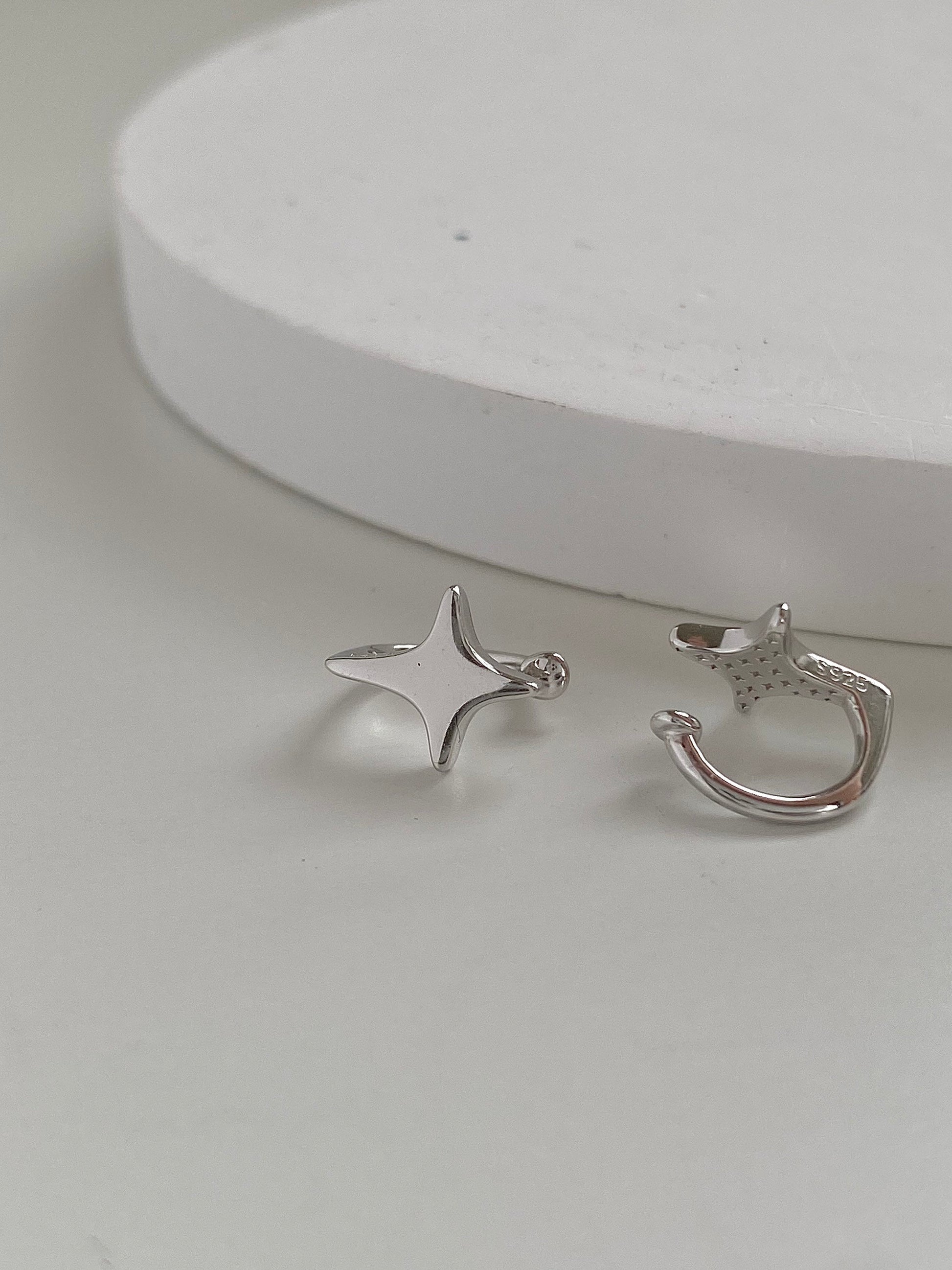 Introducing our Dainty Starbeam Ear Cuff, a charming addition to the Deja vu Jewellery collection. This S925 Sterling Silver ear cuff features a delicate four-pointed star design, making it a perfect accessory for those who love to showcase their individuality and style.The ear cuff is expertly crafted from high-quality S925 Sterling Silver, ensuring its durability and resistance to tarnish. The intricate four-pointed star design adds a touch of celestial elegance to the piece, while its small size and lightweight construction make it comfortable for all-day wear.
