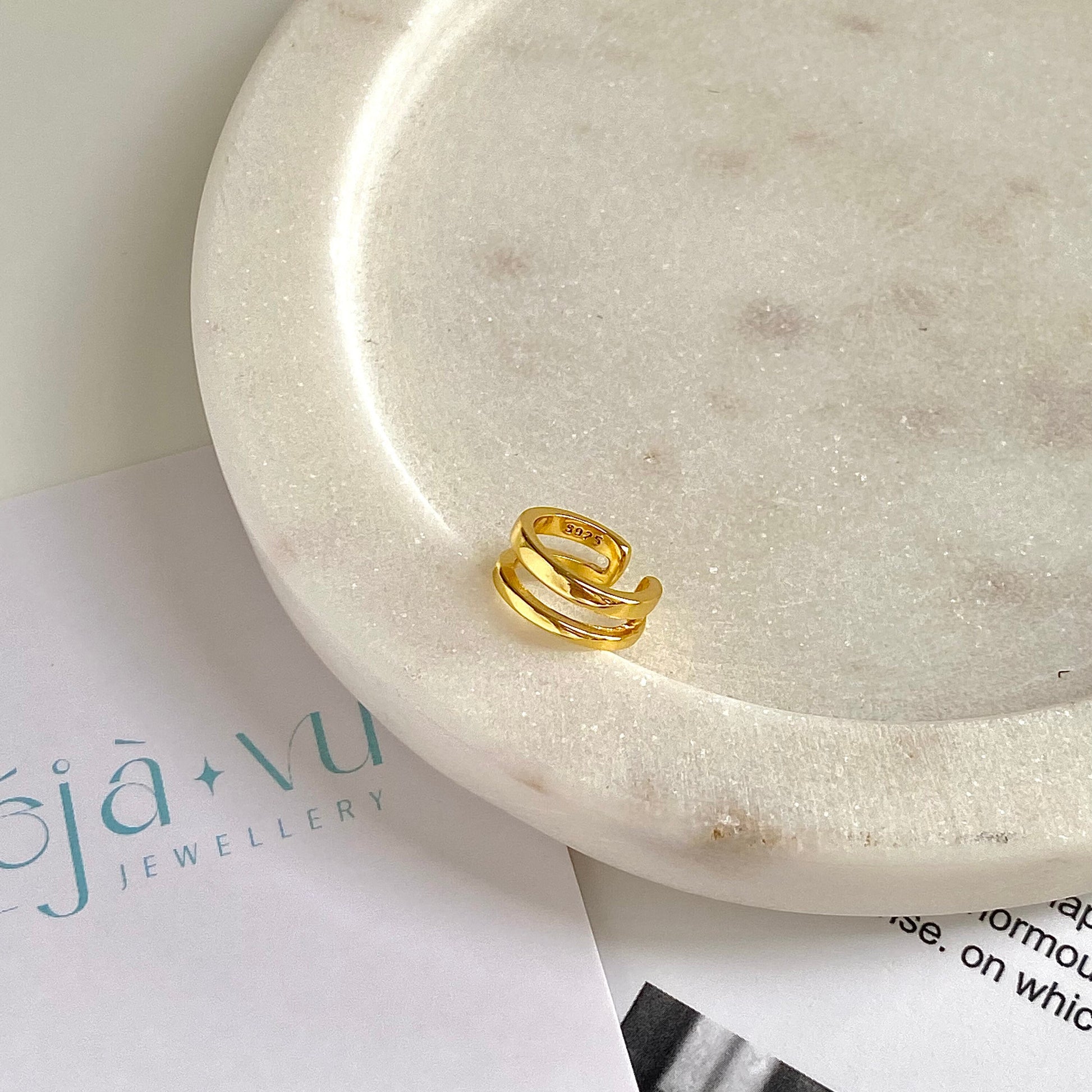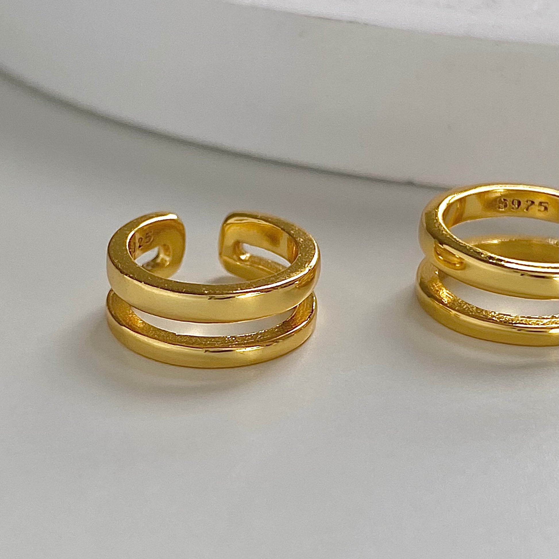Introducing a unique and contemporary addition to our Deja vu Jewellery collection: the Golden Echoes S925 18k Gold-Plated Ear Cuff. This distinctive piece features a double-line design that resembles a pair of golden hoops stacked together. Crafted from the finest S925 pure silver and plated with lavish 18k gold, this ear cuff is an exceptional fusion of style and luxury.