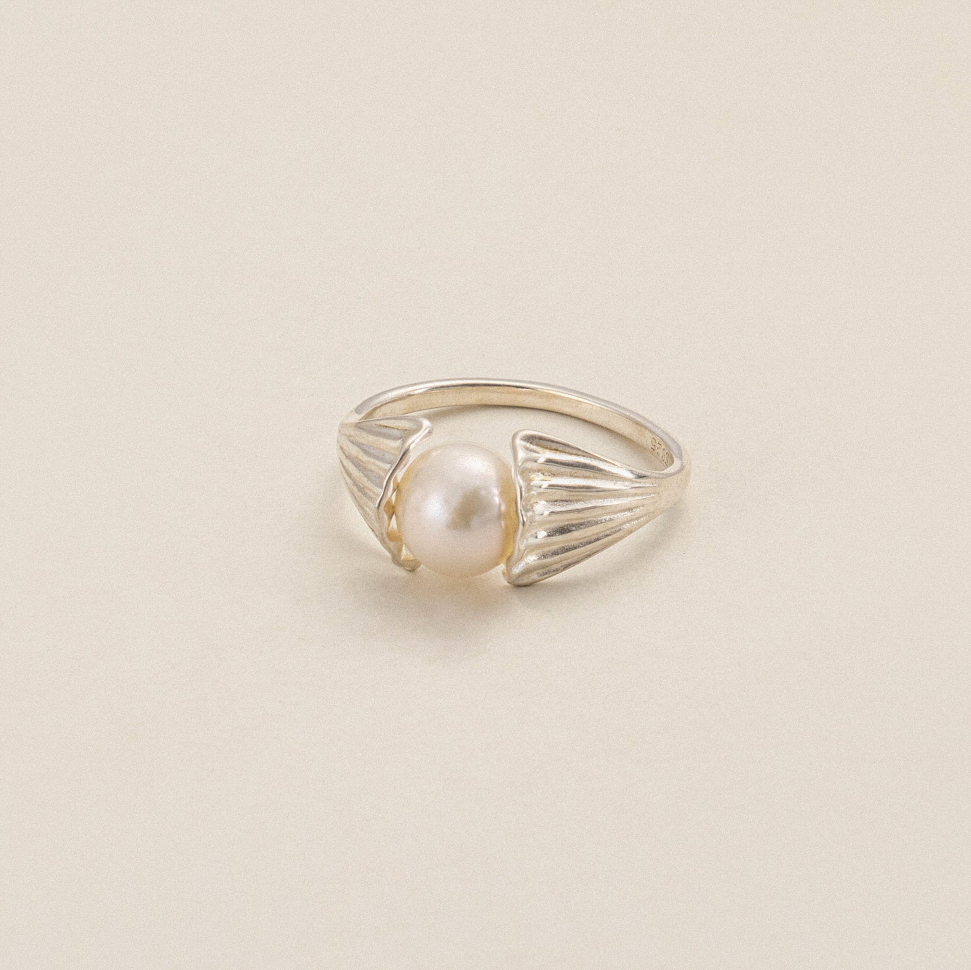 Introducing the "Pearlescent Embrace Sterling Silver Ring" by Deja vu Jewellery, where the treasures of the sea are wrapped in the comfort of the shore. This elegantly crafted piece is made with the highest quality 925 sterling silver, selected for its luster and strength. At its heart lies a luminescent 8mm pearl, born from the shimmer of shell powder, cradled in a delicate silver shell that mirrors its oceanic roots.